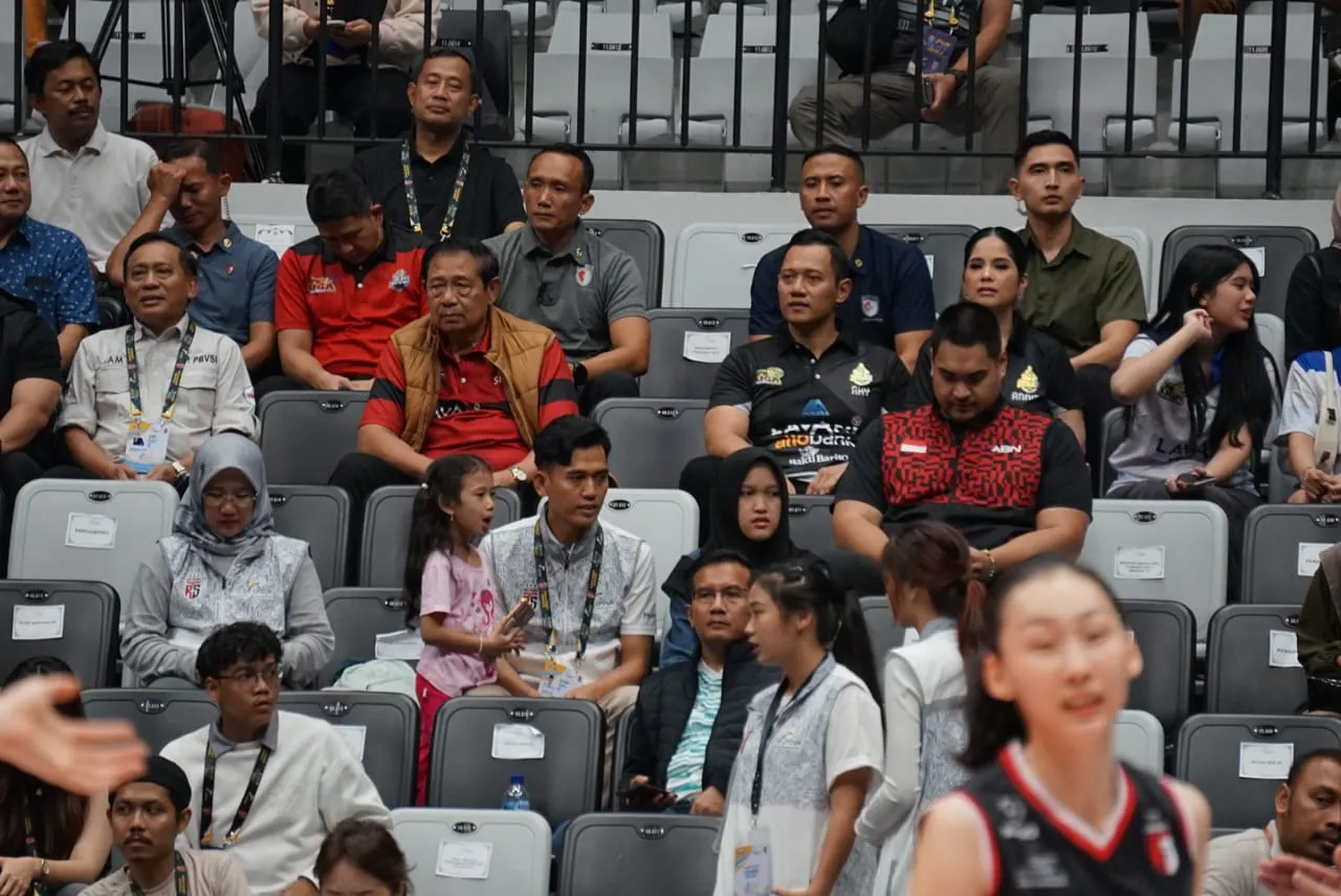 Agus Harimurti Yudhoyono dan istri Annisa Pohan juga hadir di Indonesia Arena. Namun AHY tiba di Indonesia Arena saat pertandingan sudah memasuki set kedua.