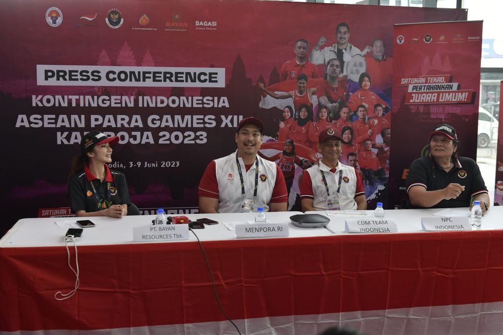 Secara khusus Menpora Dito menyampaikan terima kasihnya kepada semua pihak terkait yang telah mendukung perjuangan Kontingen Indonesia sehingga mampu meraih hattrick juara umum ASEAN Para Games ke-12 Kamboja.