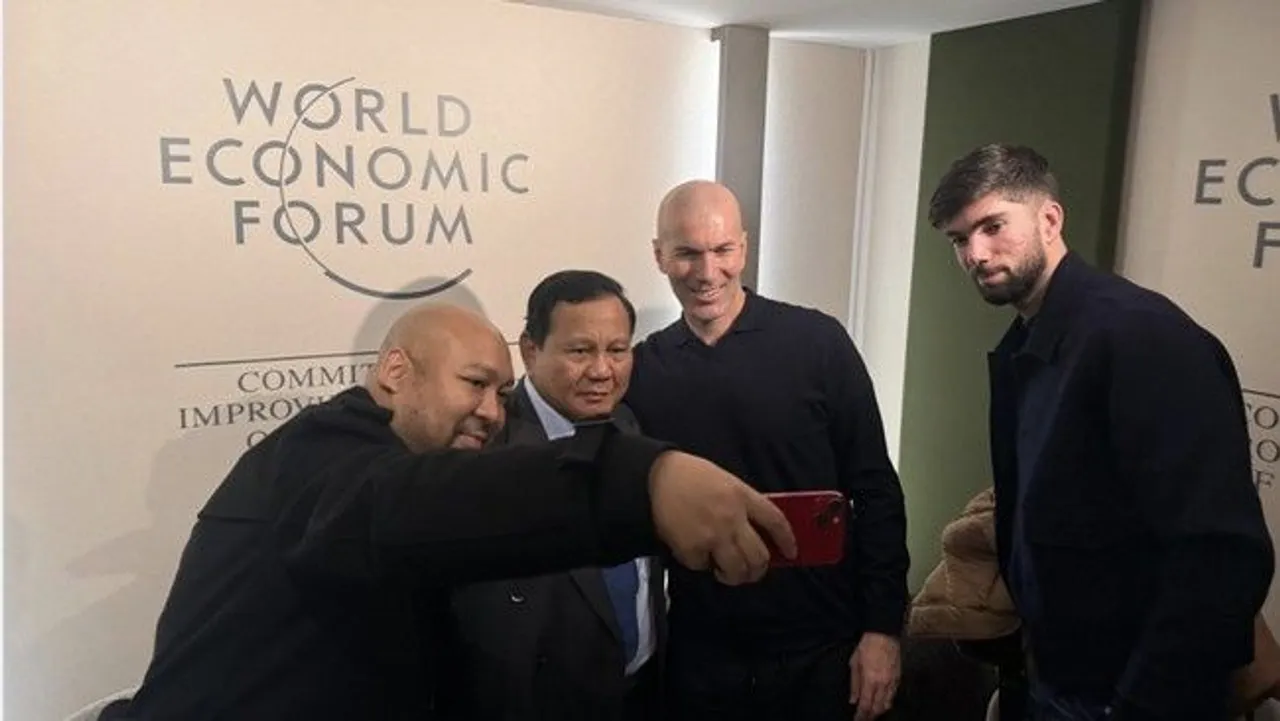 Prabowo Subianto sempat berdiskusi dengan legenda sepak bola dunia, Zinedine Zidane saat mengikuti World Economic Forum di Davos, Swiss.