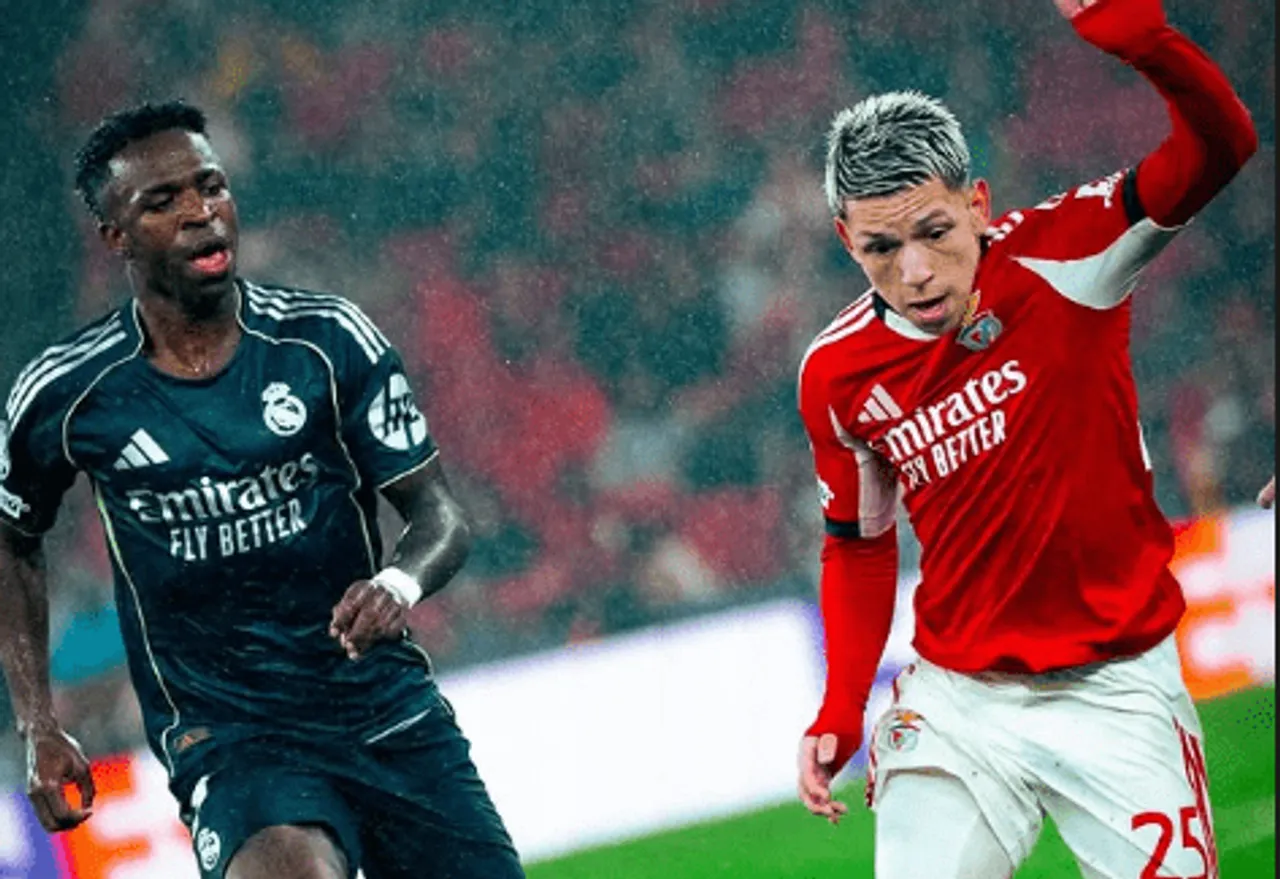 Pemain Benfica, Gianluca Prestianni, mengeluh kepada Vinícius Junior sambil menutup mulut dengan kausnya, sebelum penyerang Brasil itu tiba-tiba menunjuk ke arahnya dan berlari ke arah wasit. Diduga bahwa dia menyebutkan kata 'monyet'.