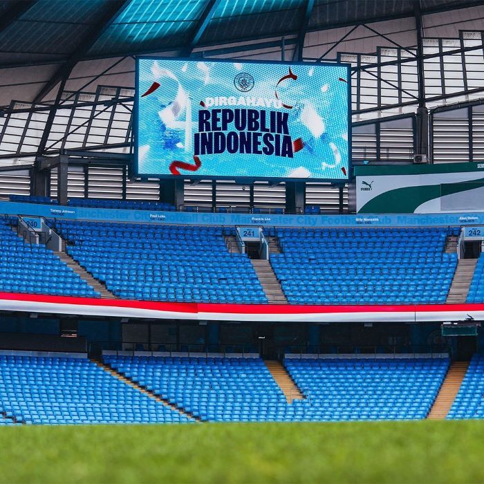 Pada unggahan tersebut, terlihat bentangan bendera Merah Putih yang mengelilingi kandang klub The Citizens itu.