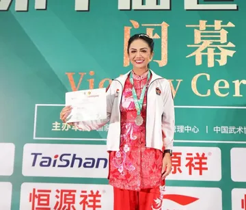 Diva Indonesia, Krisdayanti meraih medali perak di Kejuaraan Dunia Wushu 2025.