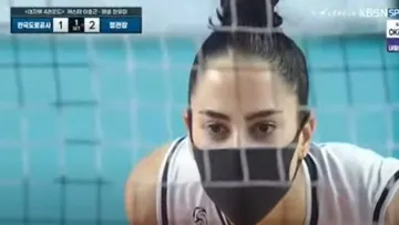 Bae Yoona adalah middle blocker dari tim Gimcheon Korea Expressway Hi-Pass