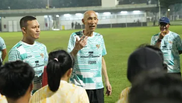 Pelatih Timnas U-17 Wanita Indonesia, Satoru Mochizuki mengingatkan soal kontrol dan passing.